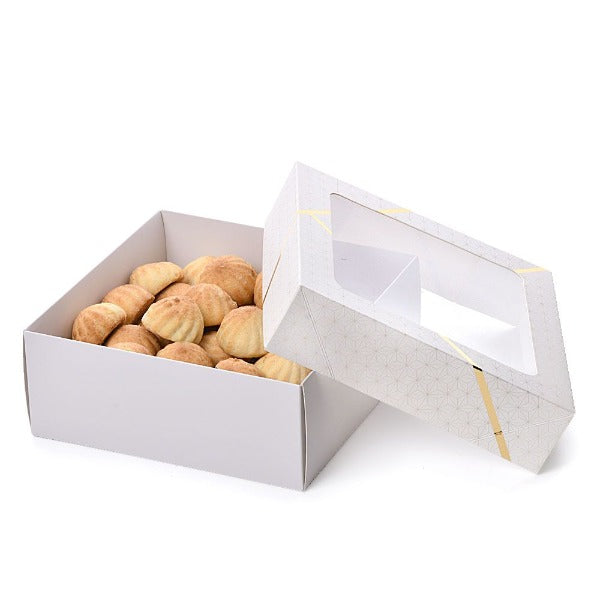علبة فاخرة للمعمول والحلويات بغطاء شفاف وزخرفة ذهبية