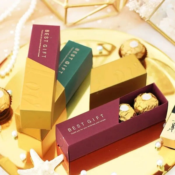 علب شكولاته  المقاس : الطول 14 العرض  3.5  النوع : علب سحب  الالوان : عنابي - اخضر...