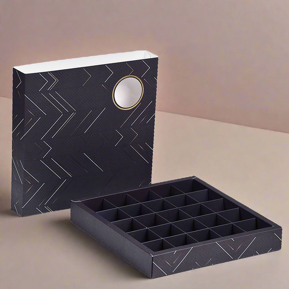 علبة فاخرة للشكولاتة والحلويات بنافذة شفافة اللون كحلي -25 قسم