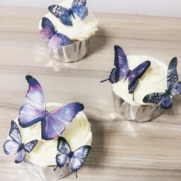 فراش تزيين الكيك  العدد : 36 فراشة  الالوان : الوردي والبنفسجي