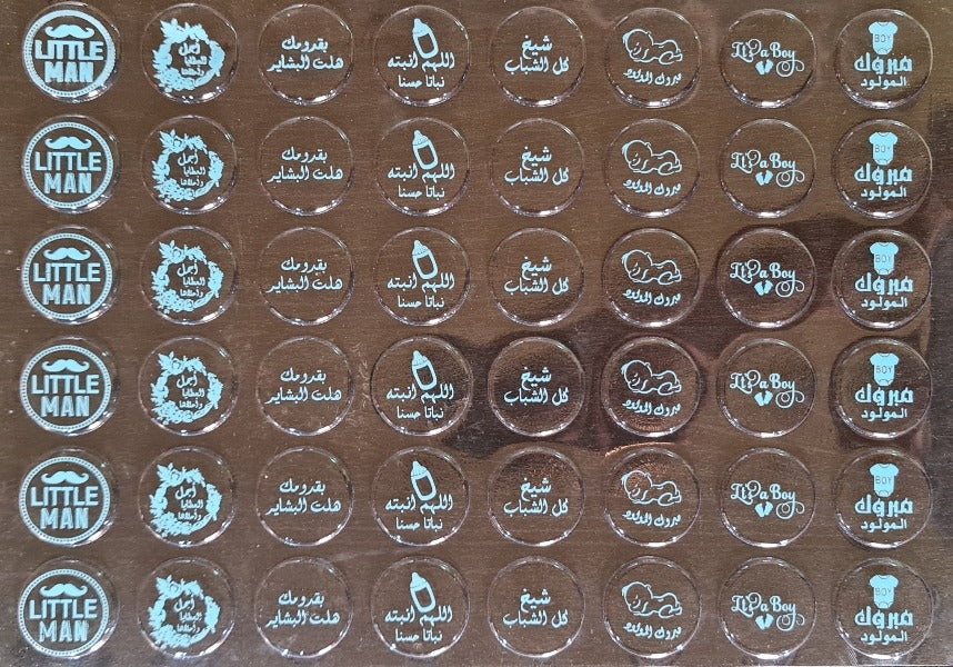 ورق ترانسفير عبارات مواليد وايقونات منوعة 48 نافدة  خاص لتزيين الشوكولاتة