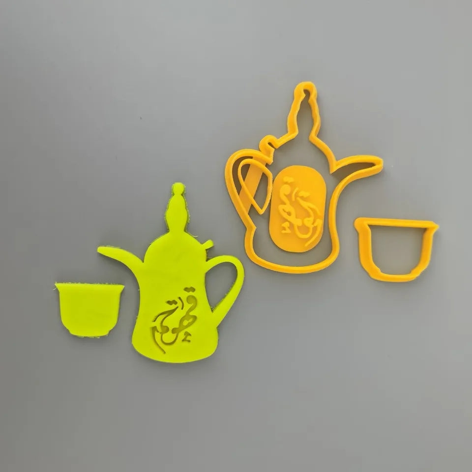 الدلة : 9*7.5 سم الفنجان : 4*3 سم كلمة قهوة: 3*4 سم